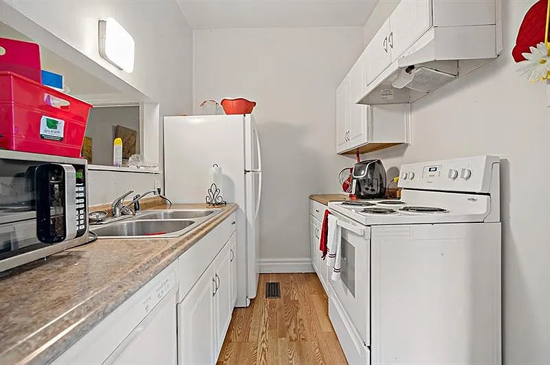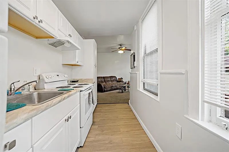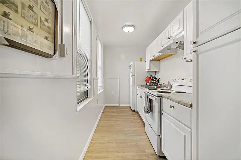 has updated kitchen with white cabinets and all amenities needed. Tons